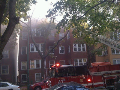 There was a 2 alarm fire yesterday shortly after 4PM at an apartment building at 1241-43 W. Granville. According to multiple news sources, the fire was a result of unattended cooking and left 6 people homeless and sent a firefighter to the hospital. Because of the difficulty of the blaze, at least 8 fire engines, 4 trucks and 100 firefighters responded to the scene.