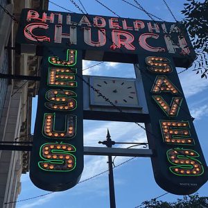 According to Rev. John Pickett, Assistant Pastor and Elder at the Philadelphia Church, even though it was operating as a church, there was nothing to distinguish the facade from its former purpose. So Benson thought of a grand sign highlighting the name of the church and boldly proclaiming “Jesus Saves” so that people would know exactly what the group of people of predominantly Swedish background was all about. They even had a church and community supported fund raiser for the construction and installation of the sign.